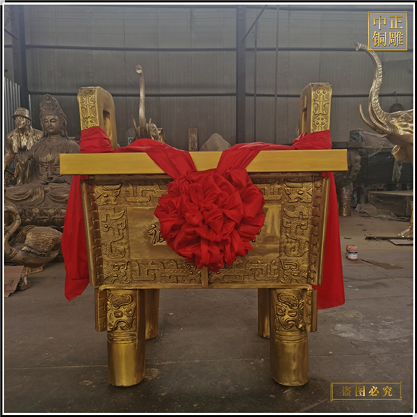 现在铜鼎厂家制作一般流程就是首先---设计铜雕的款式,然后开模修模,确认铜鼎的模型制作腊模,浇灌铜水,脱蜡,铜鼎焊接打磨,大致就是这样的制作流程。整体下来应该有30多道工序,每道工序都有一定的时间段,所以整个完整铜雕下来工艺很繁琐。
