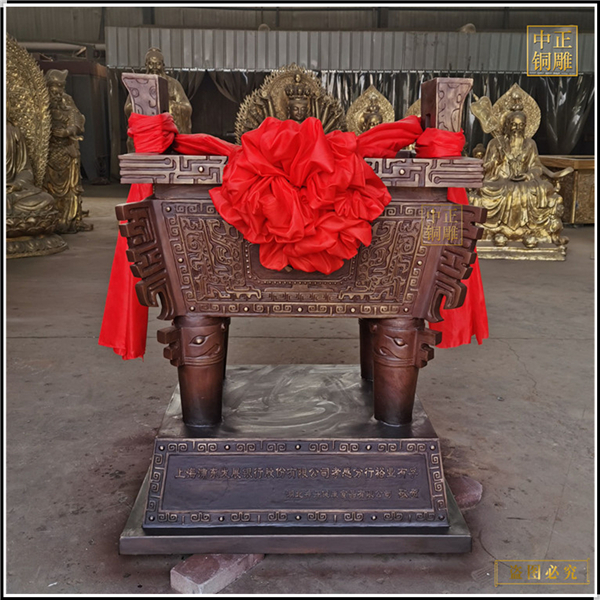 在铜雕的发展历程中,青铜器时代是一个重要的标志,它不仅仅代表着铜雕的发展,也代表着文明的进步,社会的发展,人们从石器时代走向了青铜器石代。在青铜器时代的铜雕中,铜鼎自始以来所代表的是一种权威,从烹饪工具到王权象征,这就是古代的铜鼎。
